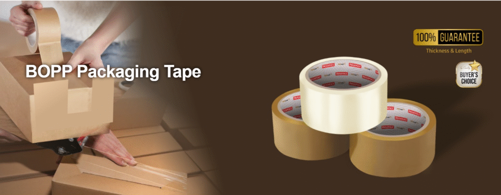 Its high tensile strength and tear resistance make it reliable for sealing cartons and parcels of various sizes and weights. It stays strong during shipping, handling, and storage. The tape is also moisture-resistant, keeping packages protected from humidity and environmental damage.